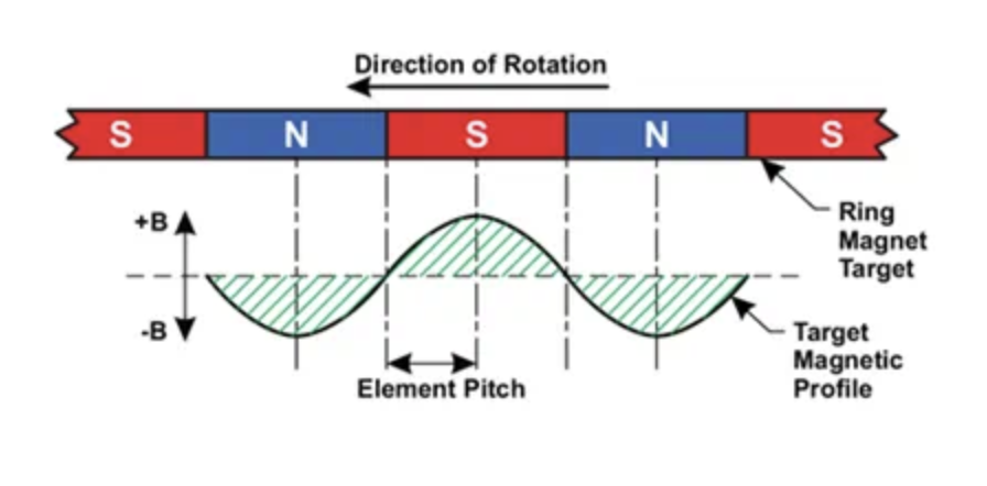 This short movie shows the hall sensor output due to a rotating wheel with magnets.