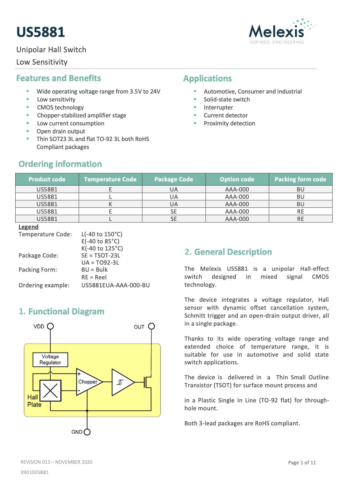 replacement as a bipolar hall sensor is the well known US5881 does include a open drain and schmitt trigger and voltage regulator built into its design.